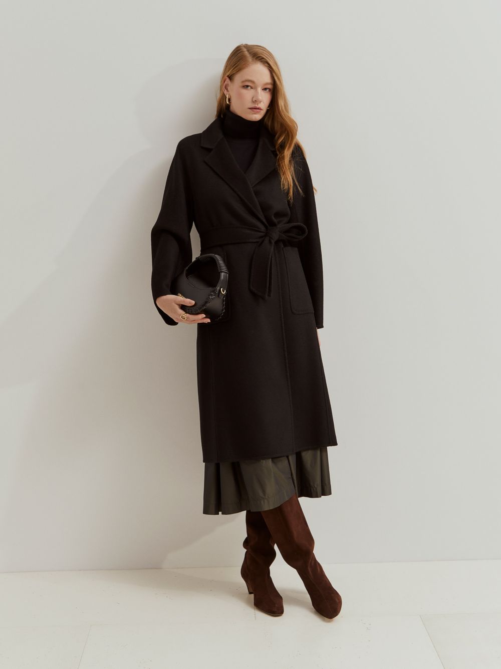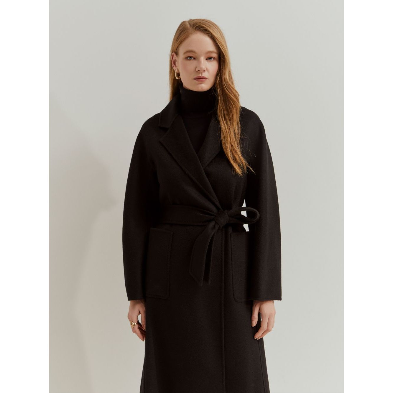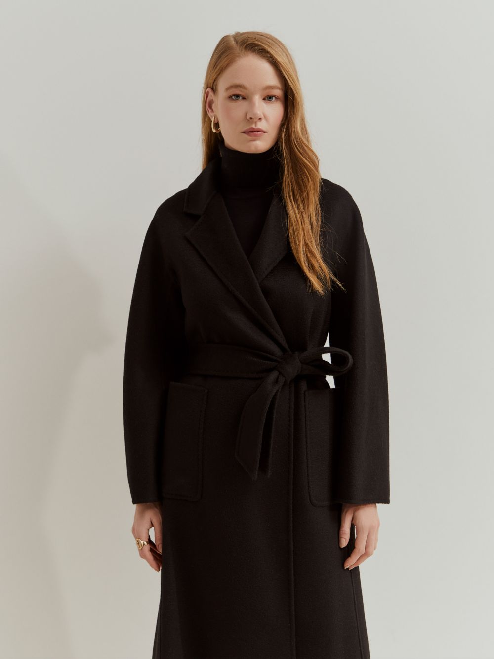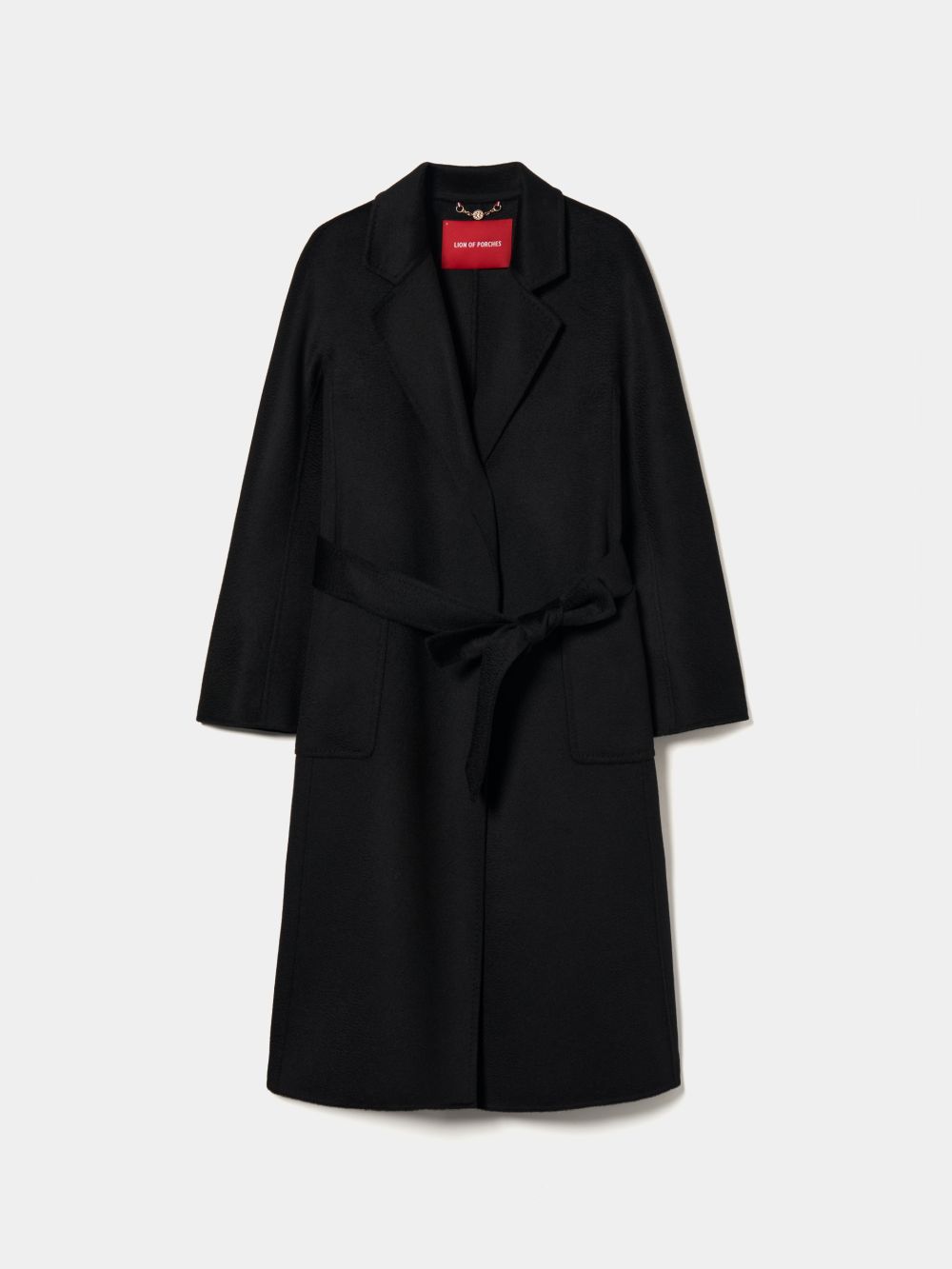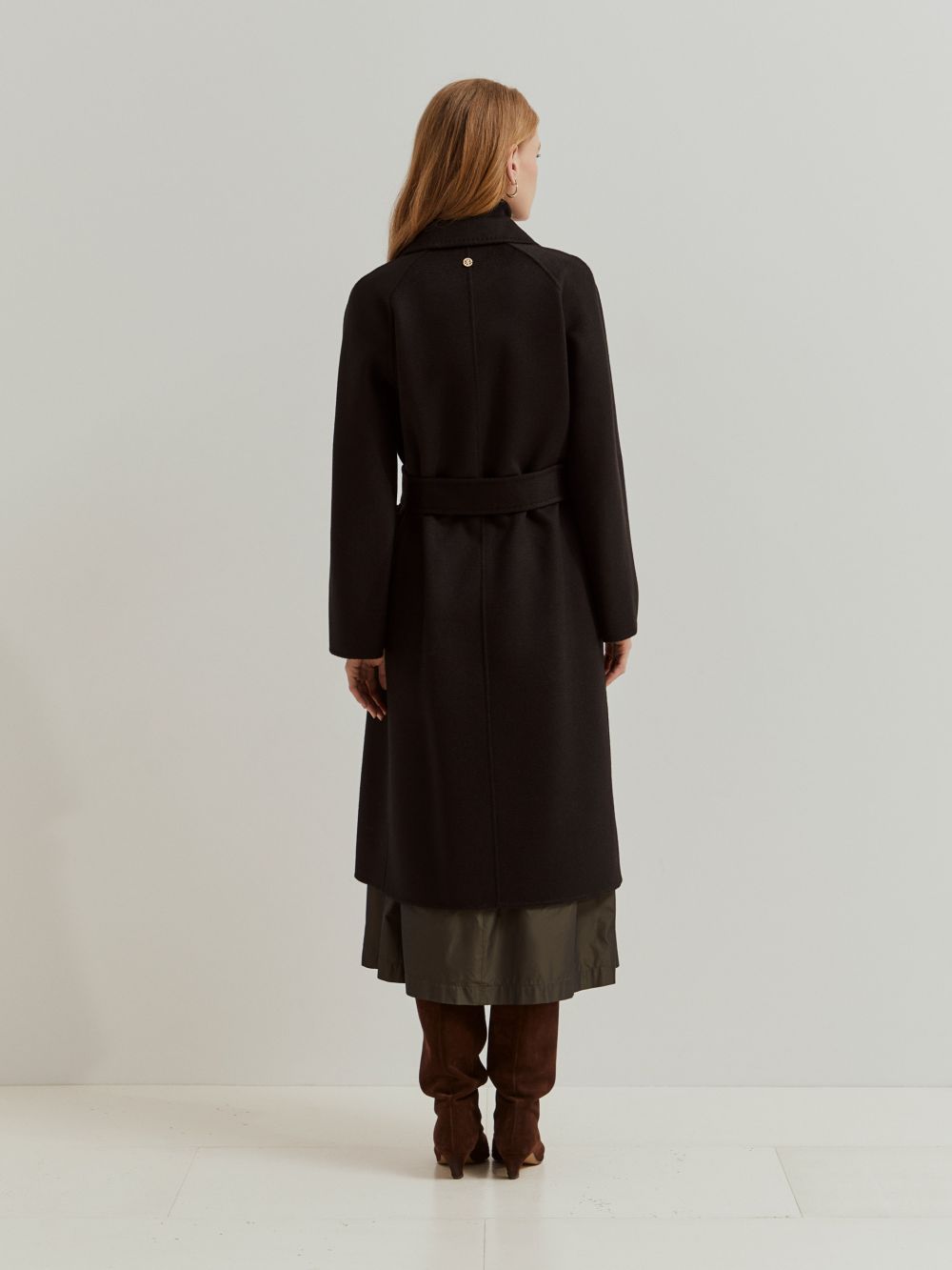 Asegúrate de vestir elegantemente este invierno, sin olvidar la comodidad, con este abrigo largo de tela. Con cierre bandolera y cinturón del mismo tono y tejido para ajustar al gusto y acentuar la silueta. Terminado con dos grandes bolsillos de parche en la parte delantera. Fabricado íntegramente en lana, con acabado Efecto Ripple, que le aporta al abrigo un toque texturizado y sofisticado, para un look impecable. Color negro.