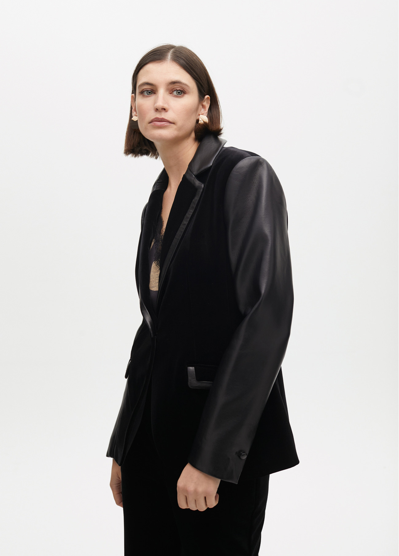 Americana entallada terciopelo detalles efecto piel negro de Lola Casademunt