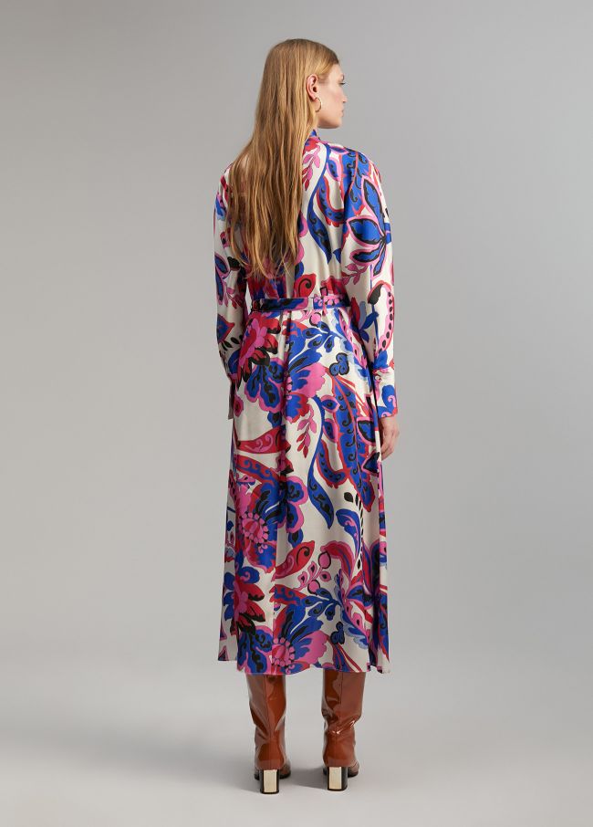 Vestido camisero largo estampado paisley rosa-multicolor.